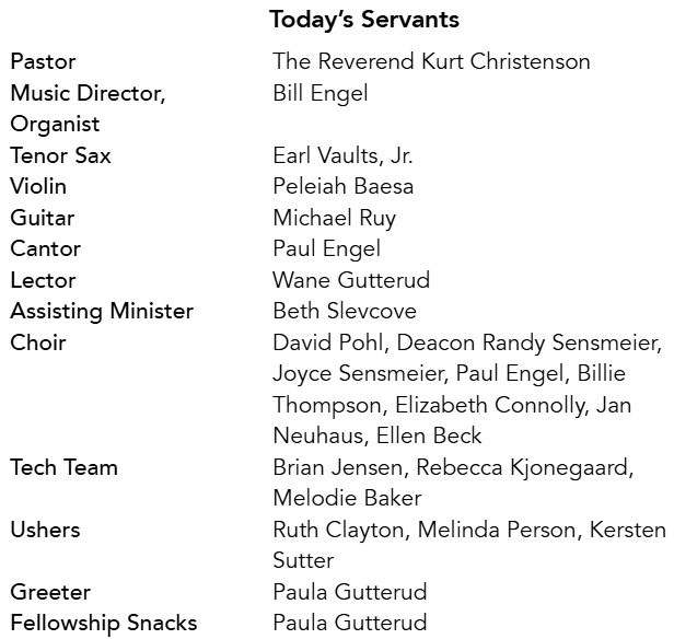 Profession of Faith is from Gurukul Lutheran Theological College and Research Institute (a seminary in South India), adapted by Keld B. Hansen, 2009, as provided in “Listen to the Voice of Creation,” Season of Creation Celebration Guide 2022, 33.