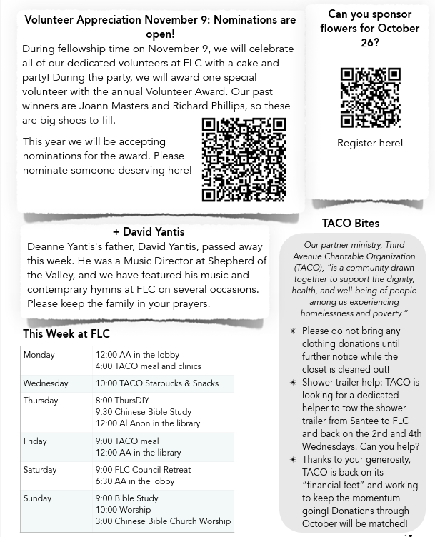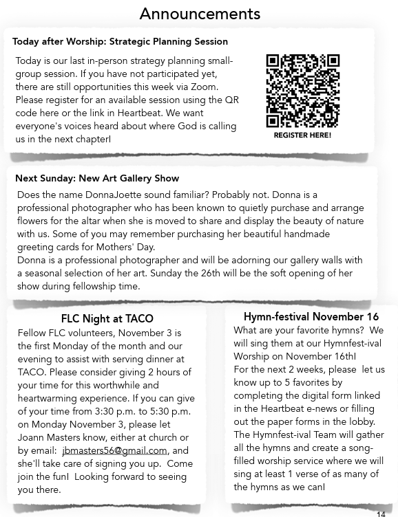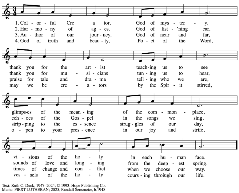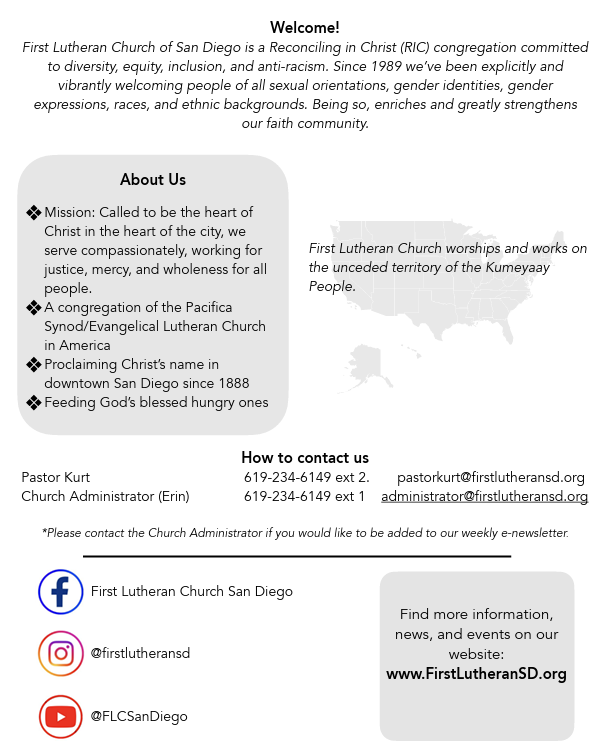 We welcome you into the body of Christ and into the mission we share: join us in giving thanks and praise to God and bearing God's creative and redeeming word to all the world.