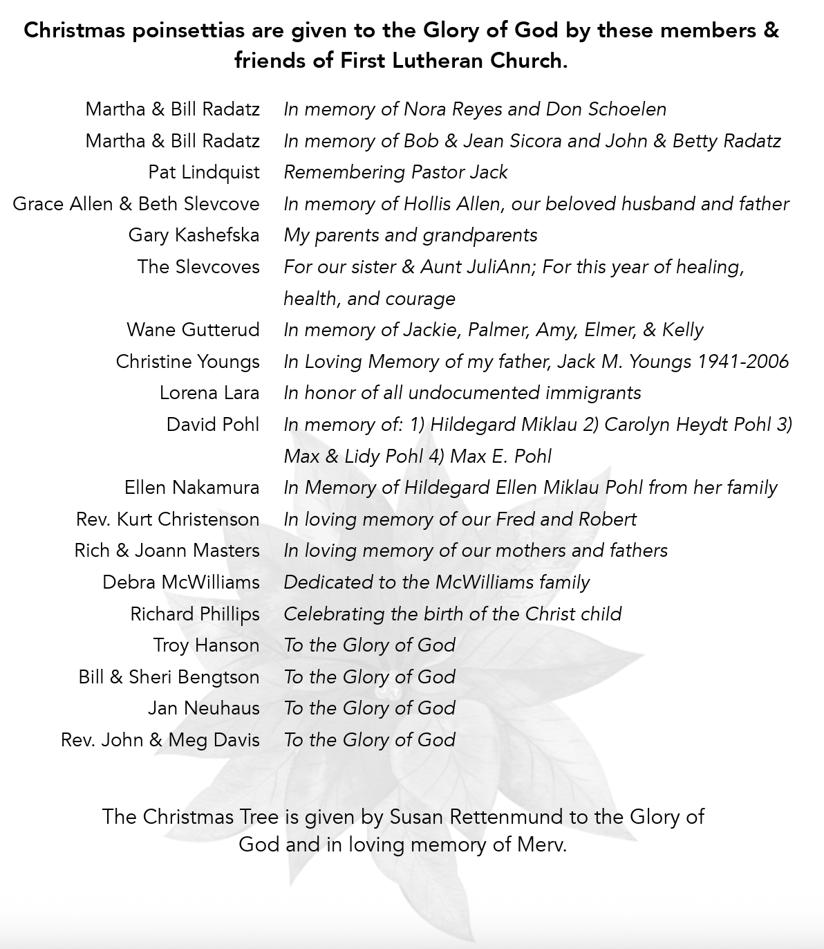 By the tender mercy of God love has broken upon us! Light is given where once there was darkness, and hope where there was only death. Go into the world to find the lost, heal the broken, feed the hungry, release the prisoner, rebuild the nations, bring peace among people, and make music in every heart. And the blessing of God, + Father, Son and Holy Spirit, be upon you and remain with you always.