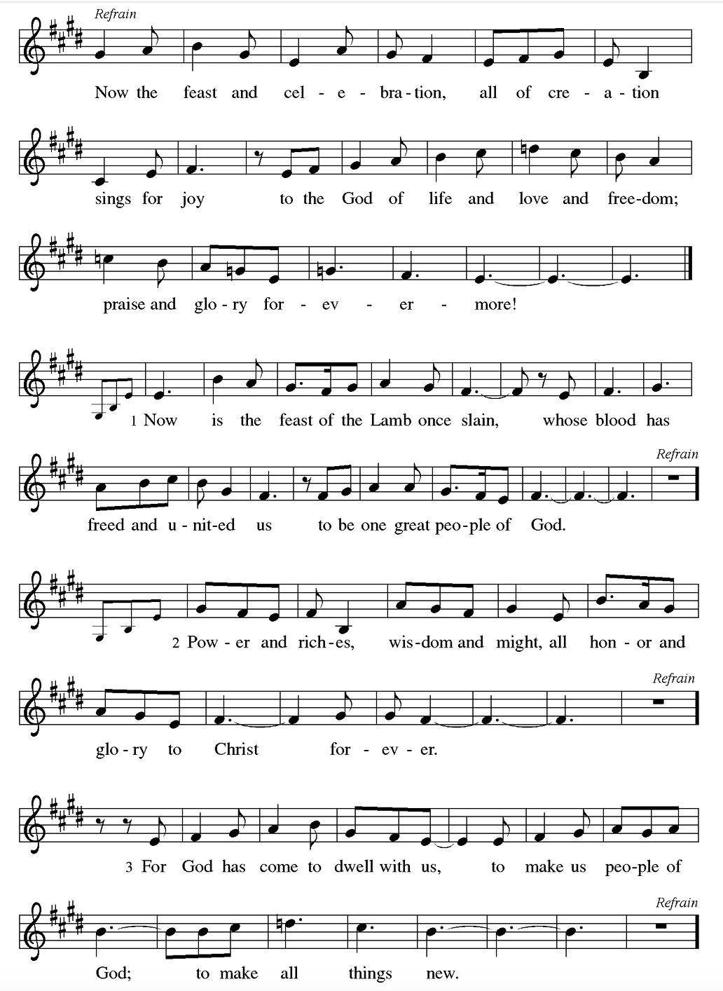 Holy, mighty, and merciful Lord, heaven and earth are full of your glory. … New Covenant in my blood shed for you and for all people for the forgiveness of sin. Do this for the remembrance of me.