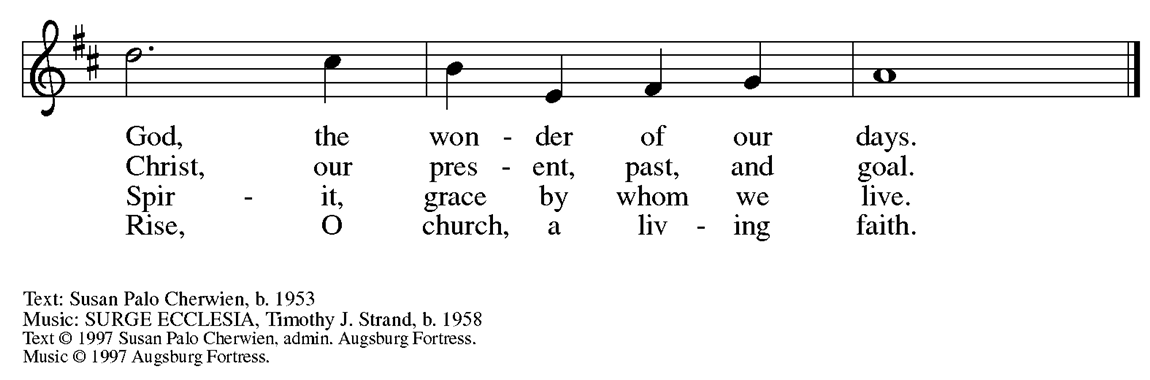Our Father in heaven, hallowed be your name, your kingdom come, your will be done, on earth as in heaven. Give us today our daily bread. Forgive us our sins as we forgive those who sin against us. Save us from the time of trial and deliver us from evil. For the kingdom, the power, and the glory are yours, now and forever. Amen.