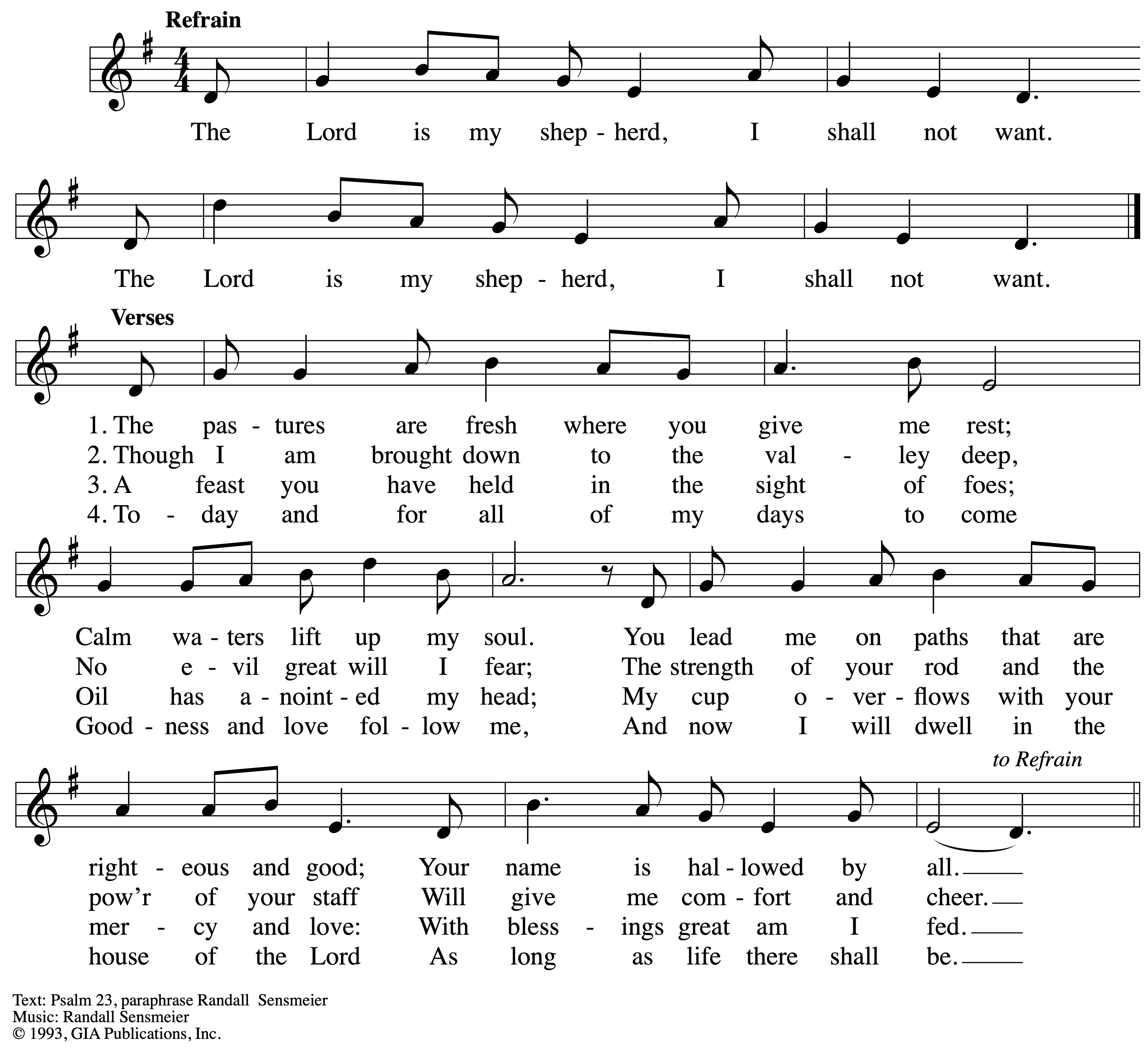 O God our shepherd, you know your sheep by name and lead us to safety through the valleys of death. Guide us by your voice, that we may walk in certainty and security to the joyous feast prepared in your house, through Jesus Christ, our Savior and Lord, who lives and reigns with you and the Holy Spirit, one God, now and forever. Amen.